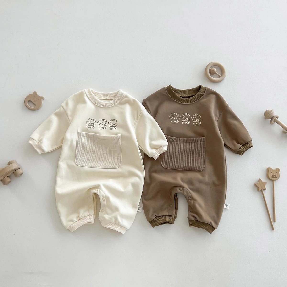 Ajoutez une touche de douceur à la garde-robe de votre petit avec ce charmant romper à manches longues. Disponible en deux couleurs apaisantes, il est décoré d'un adorable motif d'ours qui plaira à tous. Confectionné en coton de haute qualité, il offre un confort optimal pour les bébés de 0 à 24 mois.