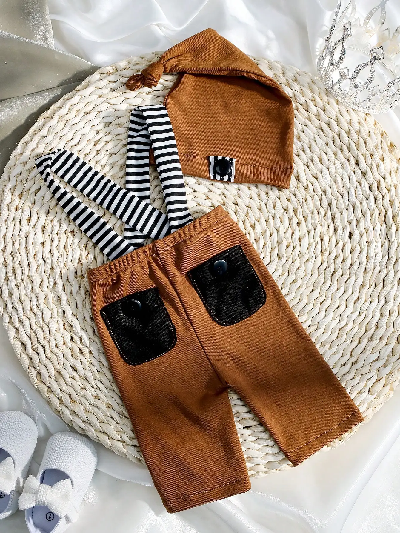 015-Ensemble Photographie Nouveau-né – Salopette Rayée avec Bonnet