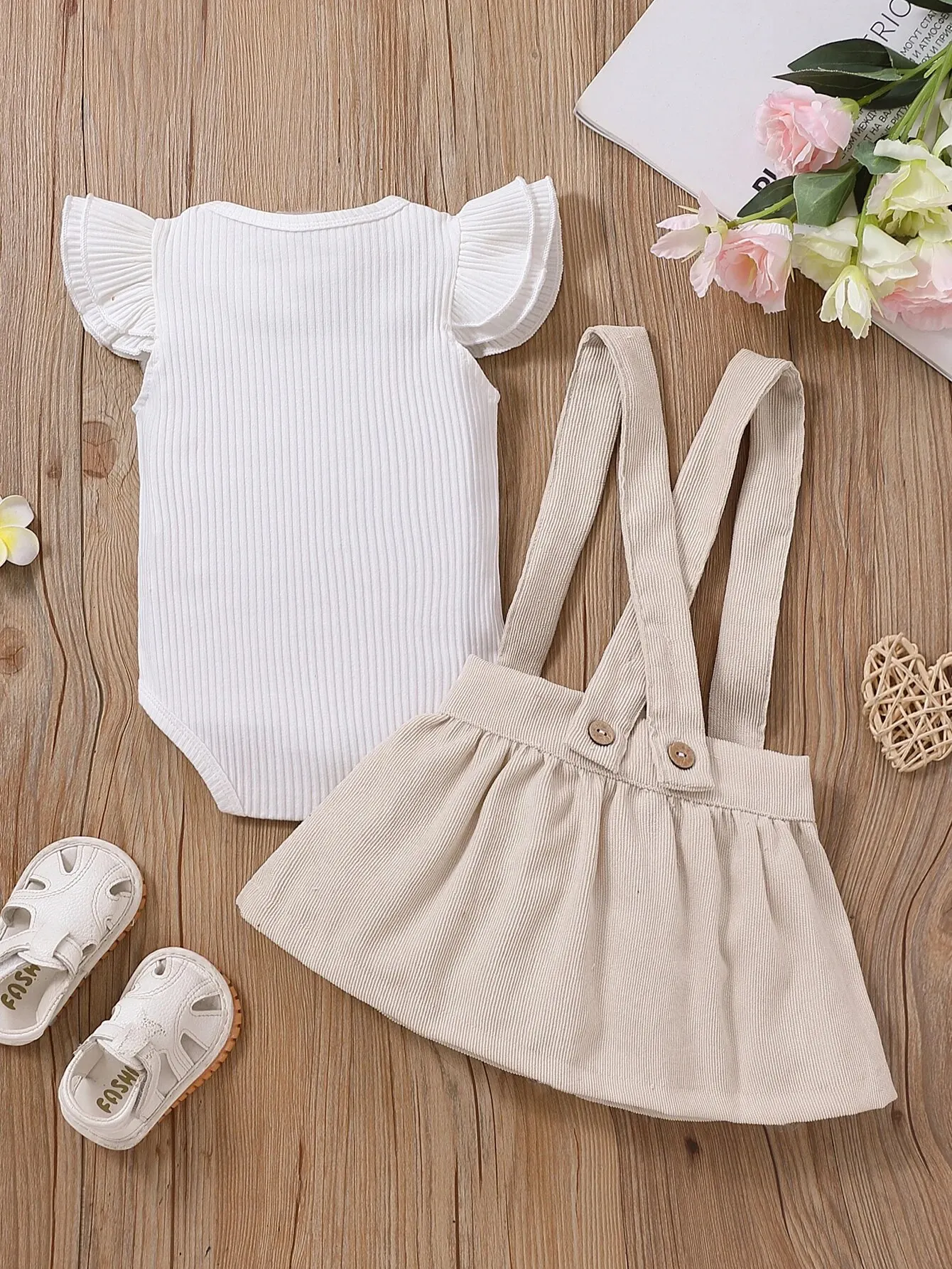 108-Ensemble Estival pour Bébé Fille : Romper à Rayures et Jupe à Bretelles Boutonnées
