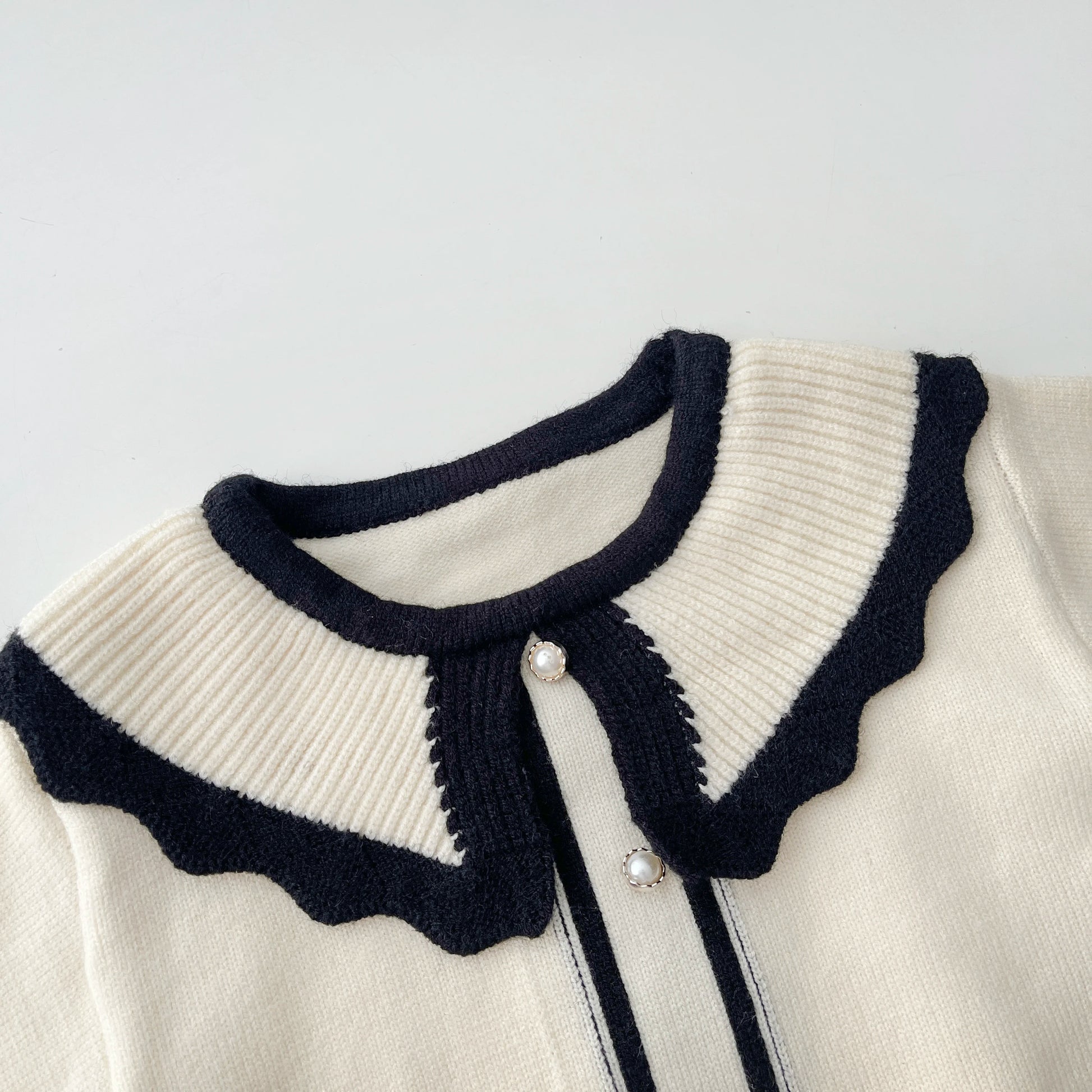 137-Ensemble Bébé Fille - Haut Tricoté à Volants et Pantalon Large en Coton
