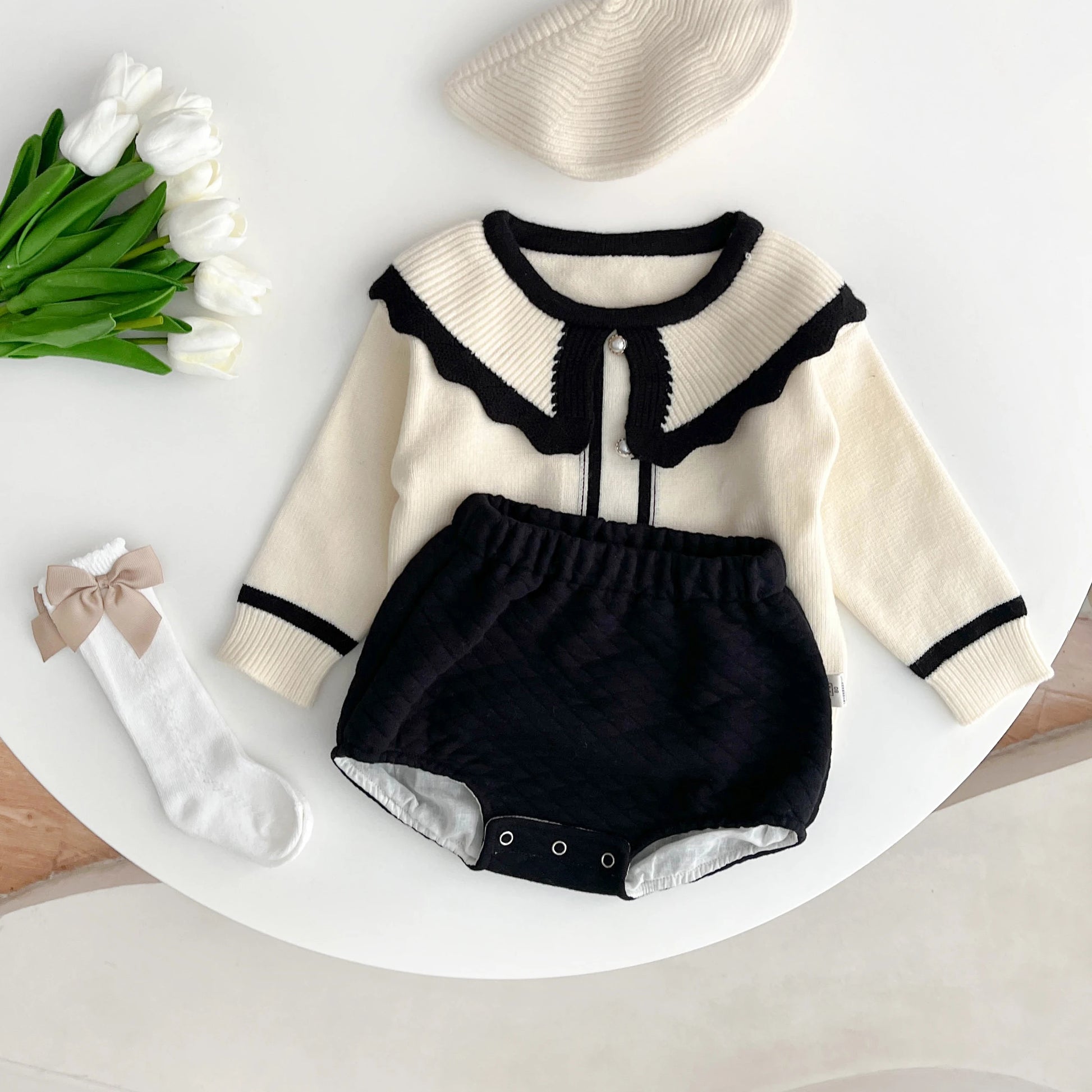 Cet ensemble allie confort et élégance pour une petite garde-robe d'automne tout en douceur. Un choix parfait pour que votre bébé fille reste à la fois à l’aise et tendance lors de ses premières explorations du monde.