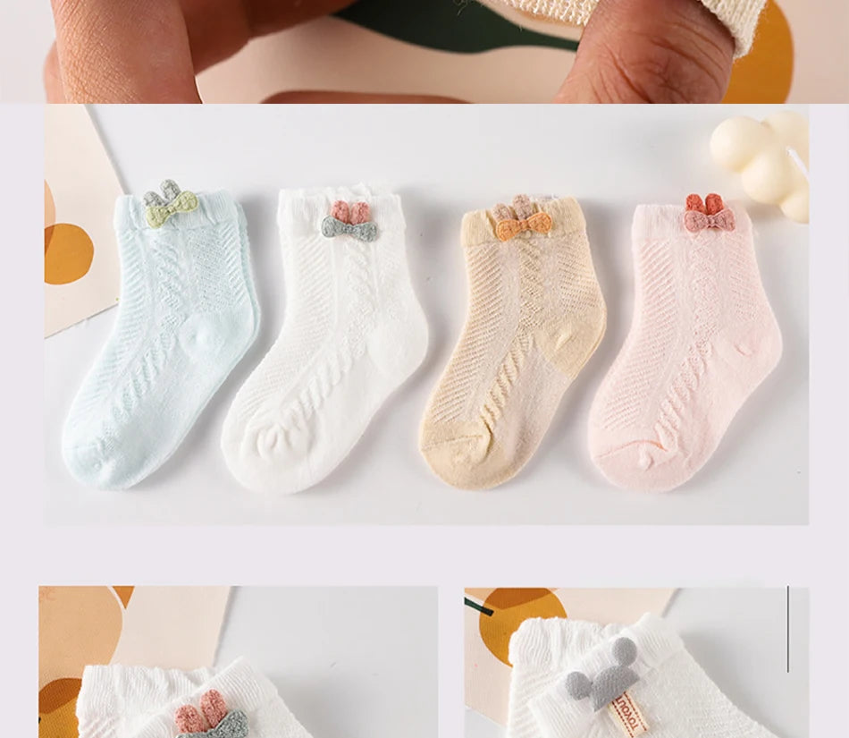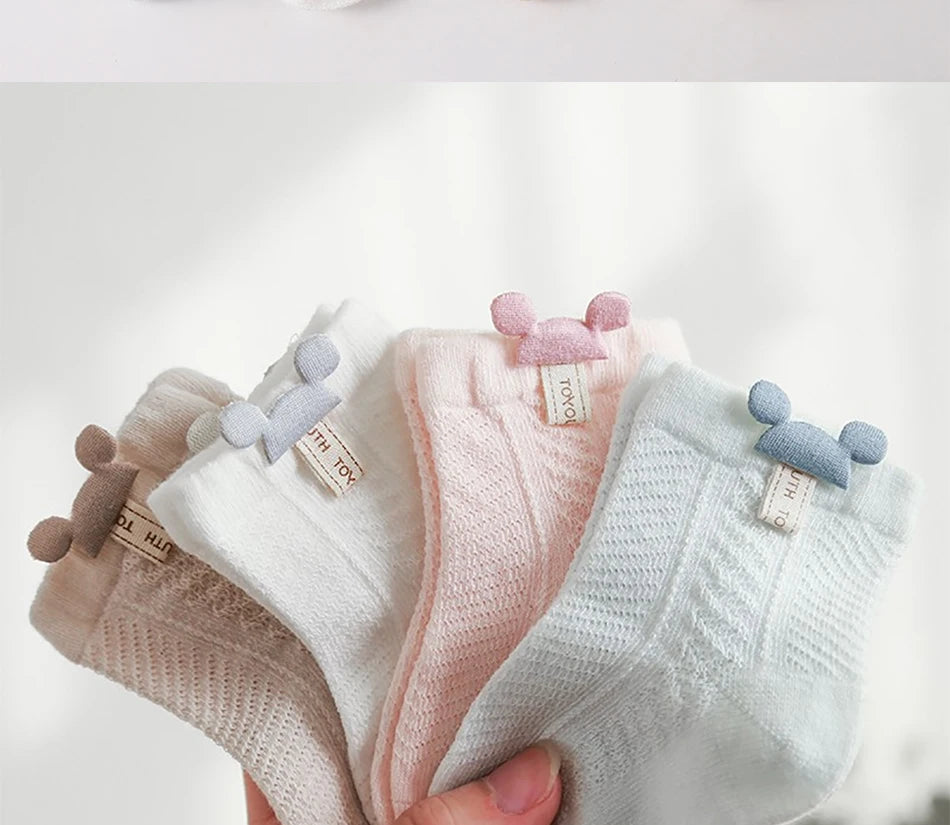 Ajoutez une touche de fun et de confort à la garde-robe de votre petit avec notre lot de 4 paires de chaussettes d'été ! Idéales pour les bébés et les tout-petits, ces chaussettes en maille respirante sont parfaites pour la saison estivale.