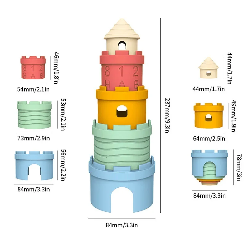364-Jouet Éducatif Empilable en Silicone – Château et Tasses Colorées